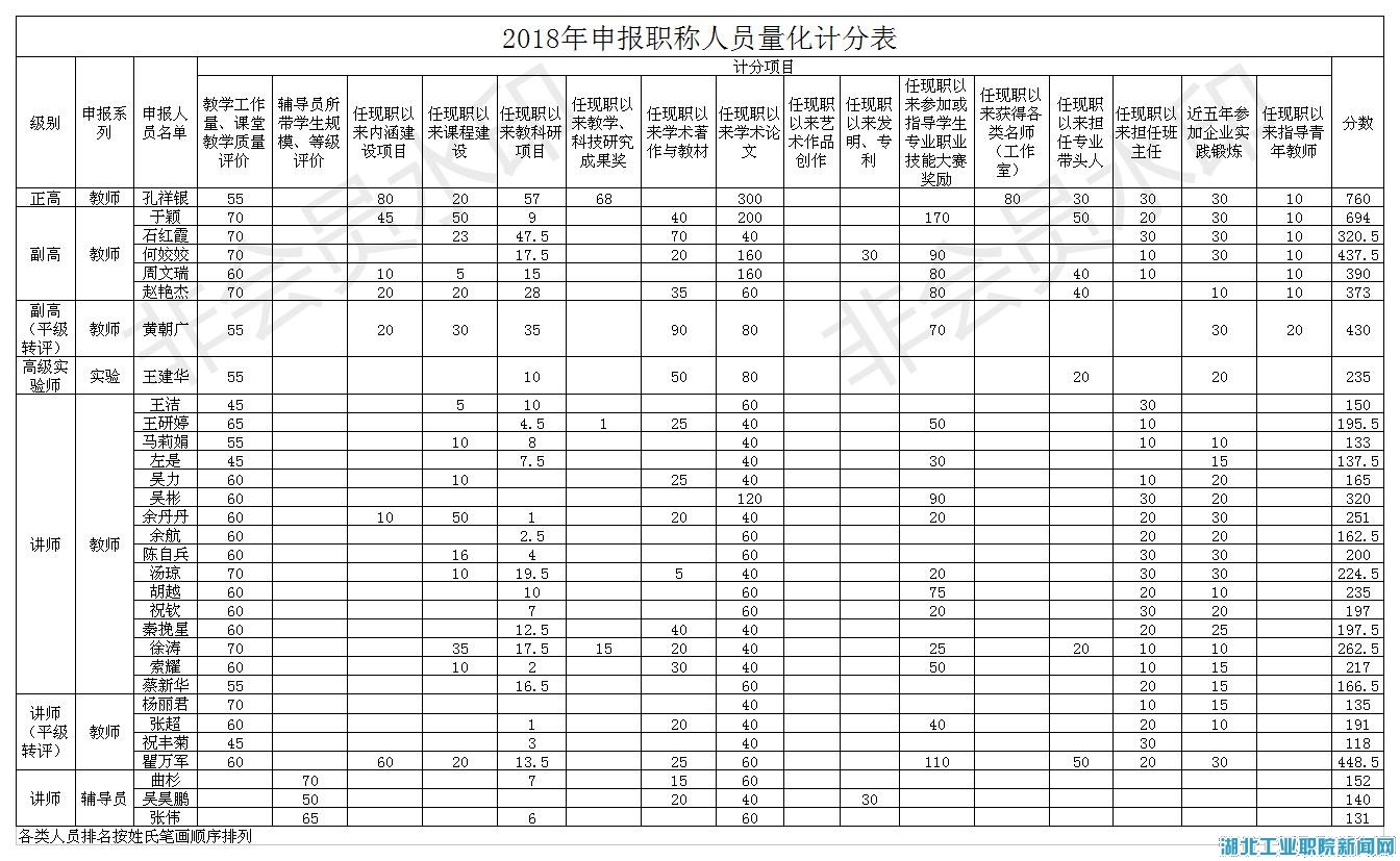 根据《云博网页版页面专业技术职务任职资格评审办法(试行)》、《云博网页版页面职称评审量化计分办法(修订)》文件规定,学院职改办(人事处)组织相关职能部门进行量化评分核定,现将孔祥银等31位同志量化评分结果及个人申报推荐评审综合材料一览表予以公示。