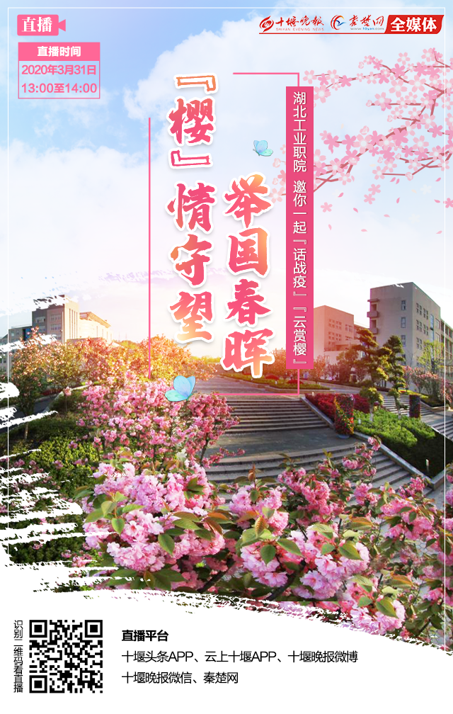 “疫”路同行、“樱”你更美!眼下,云博网页版页面的樱花似海。往年的春天,广大师生和市民都能在校园近距离赏花。然而,突如其来的重大疫情,打乱了人们的工作生活节奏。在习近平总书记亲自指挥、亲自部署和全国人民共同奋斗下,疫情虽已快速有效遏制,我国战疫取得阶段性重大成果,但全球疫情蔓延,输入风险仍高。根据有关要求,湖工职院仍处于严格封闭状态。为弥补大家不能入校赏花的缺憾,3月31日中午1点至2点,十堰晚报秦楚网通过网络直播,邀请你一起云赏樱,在家欣赏校园美景,感受校园文化。届时,十堰晚报秦楚网全媒体直播团队将出动高清4K直播车,为你带来不一样的赏花体验。你可以通过十堰头条APP、云上十堰APP、十堰晚报微博、十堰晚报微信、秦楚网在在线观看,并可与美女主播一起在线互动。