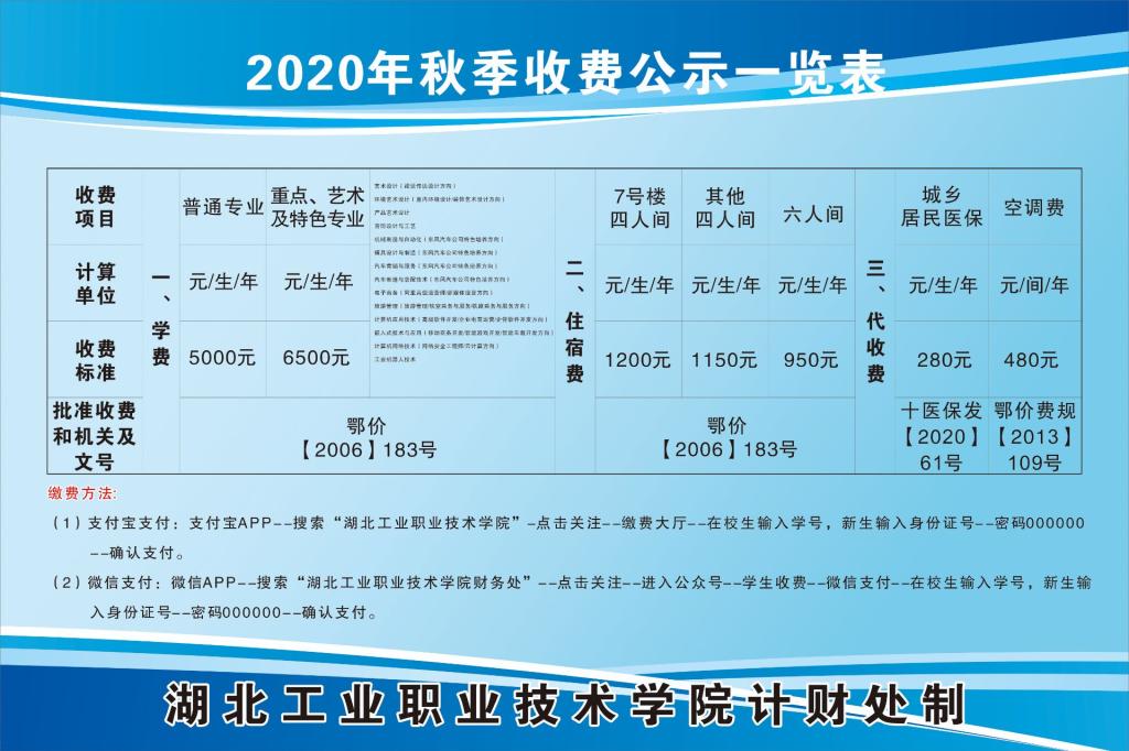 2020年秋季收费公示一览表