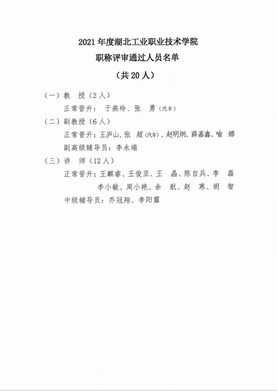 2021年度学院高中级职务任职资格评审结果公示